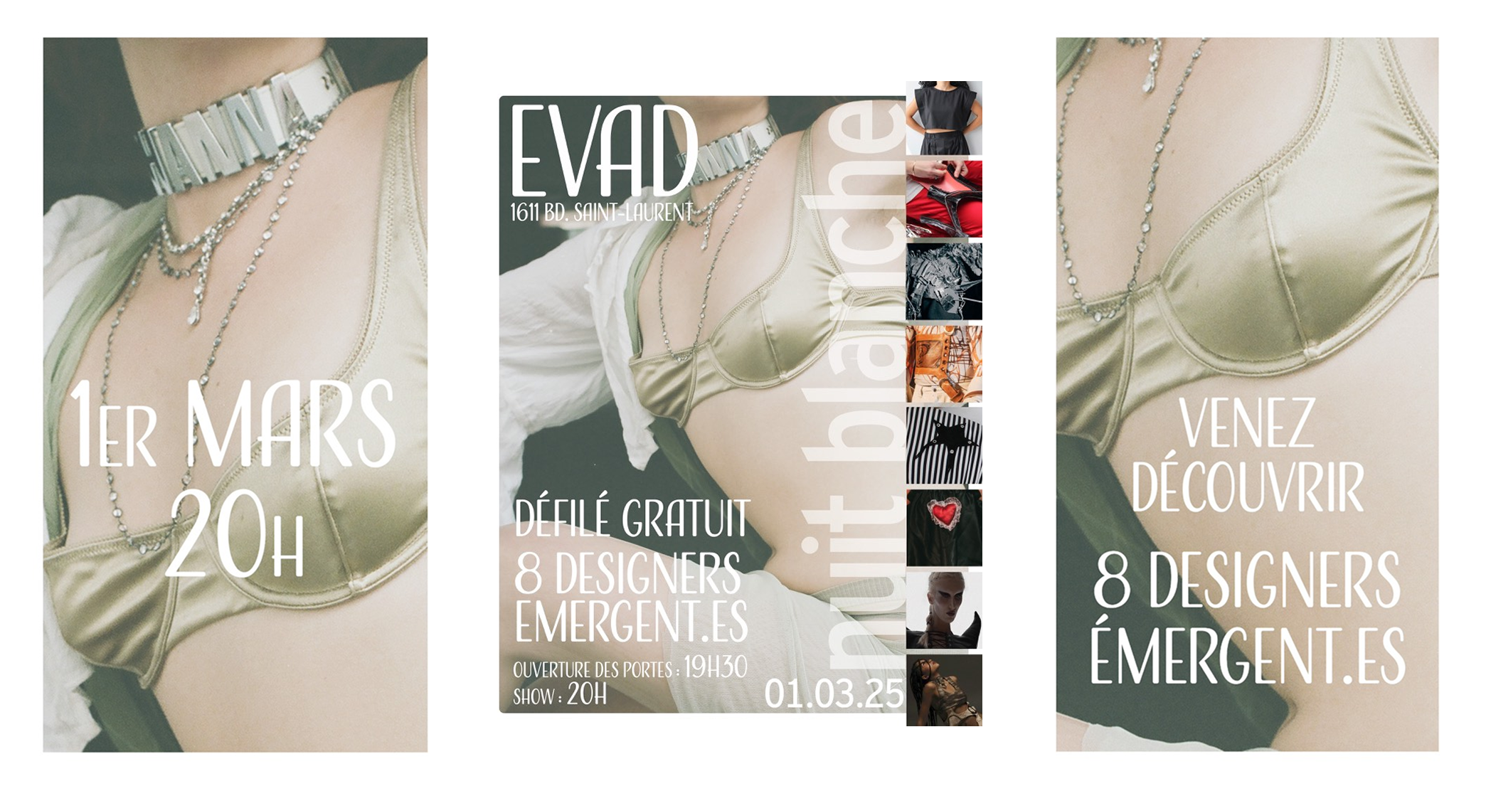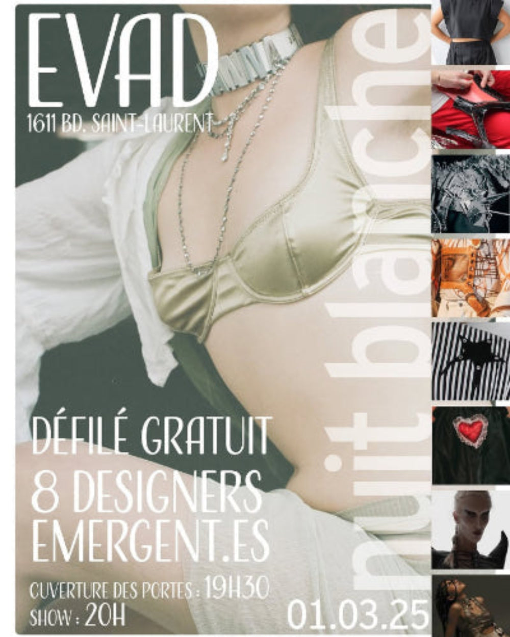 EvaD ouvre ses portes à 8 designers émergent·es pour une journée de performances et de mode. Venez découvrir un défilé en continu pendant les heures d’ouverture de la boutique, et un défilé officiel après la fermeture, fusionnant mode et performance live.